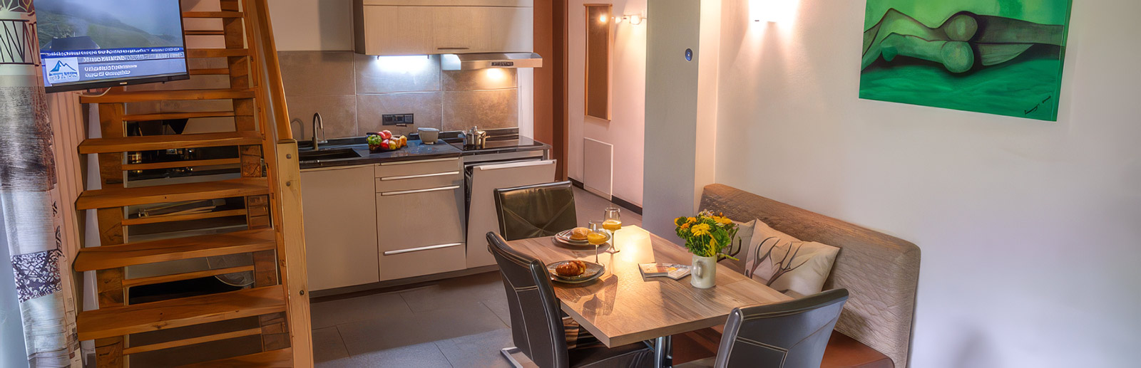 Ein echtes Plus ist die gemütliche Galerie mit zusätzlichen Schlafplätzen, die dem Apartment eine besondere Atmosphäre verleiht und gleichzeitig für mehr Platz und Flexibilität sorgt. Abgerundet wird das Apartment durch ein schönes Badezimmer sowie einen Balkon mit Blick auf den Hochsonnberg, auf dem man die frische Bergluft wunderbar genießen kann. WLAN und TV stehen selbstverständlich ebenfalls zur Verfügung.