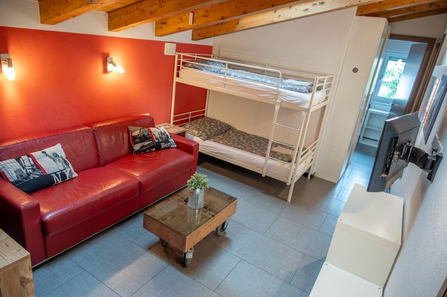 Zwei getrennte Schlafbereiche sorgen für Flexibilität und Privatsphäre: Ein Schlafzimmer mit Boxspring-Doppelbett, das sich auch als Einzelbetten nutzen lässt, sowie ein weiteres Zimmer mit zusätzlichen Schlafmöglichkeiten – ideal auch für Kinder. Abgerundet wird das Apartment durch ein schönes Badezimmer und einen Balkon mit Blick auf den Hochsonnberg, auf dem man die frische Bergluft wunderbar genießen kann. WLAN und TV stehen selbstverständlich ebenfalls zur Verfügung.