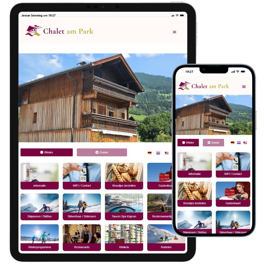 Während Ihres Aufenthalts im Chalet am Park steht Ihnen unsere digitale Gästemappe zur Verfügung. Dort finden Sie alle wichtigen Informationen rund um das Ferienhaus – von der Anreise über die Ausstattung bis hin zu nützlichen Hinweisen für einen angenehmen Aufenthalt. So haben Sie alles Wichtige jederzeit bequem auf Ihrem Smartphone, Tablet oder Computer griffbereit.