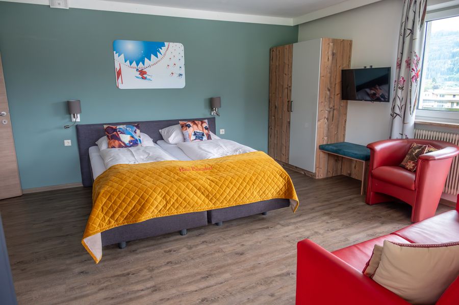 Die Etage Leon umfasst nahezu die komplette 1. Etage (ohne Apartment Hochsonnberg) und vereint Apartment Leon, das Erlebniszimmer sowie das Sigmundzimmer zu einer großzügigen Wohneinheit mit ca. 130 m² Wohnfläche. Damit ist sie ideal für 8 bis 14 Personen – perfekt für große Familien, Freundesgruppen oder mehrere Generationen, die gemeinsam verreisen und trotzdem ausreichend Rückzugsraum genießen möchten.